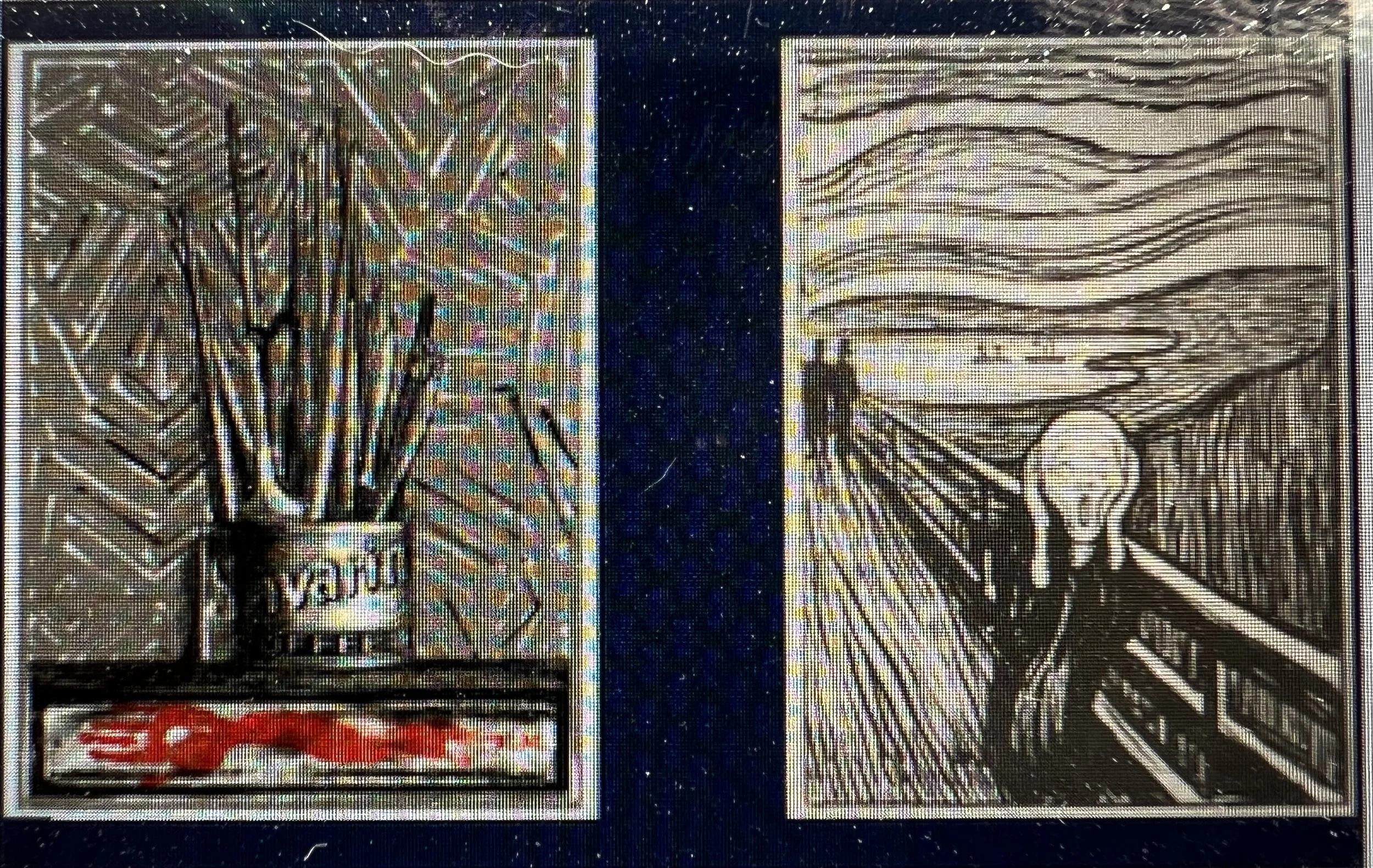 repetition of marks - thinking about the work of Edvard Munch, and how he has influenced abstract art, for example - Jasper Johns. In the show Jasper Johns and Edvard Munch: Love, Loss and the Cycle of Life, Virginia Museum of Fine Arts, Kathleen Chapman describes how Johns began to engage closely with Munch’s figurative work, “the abstract motif of crosshatching . . . a mark about making marks,” until it became the central feature of his art (fig 4–5)