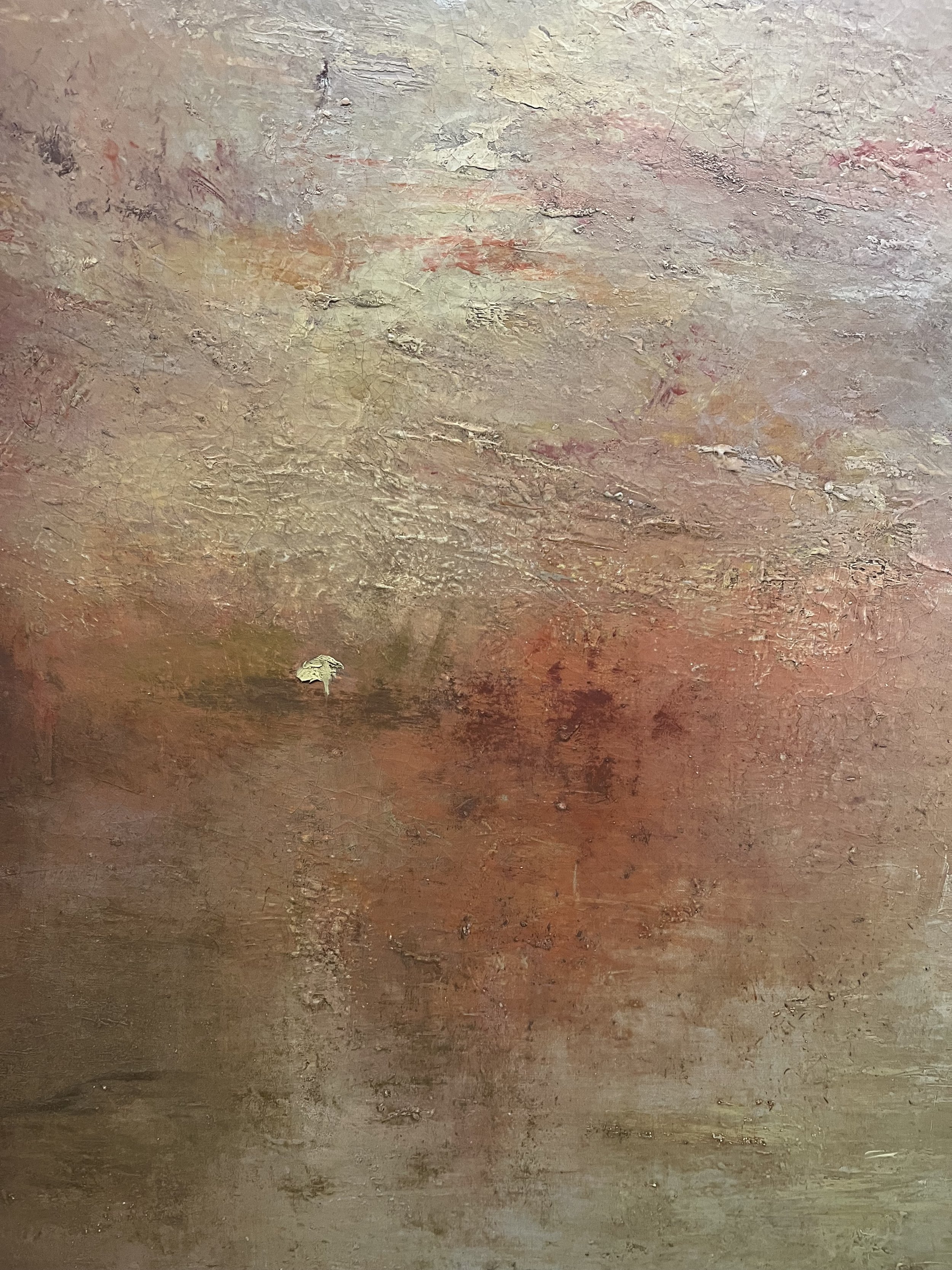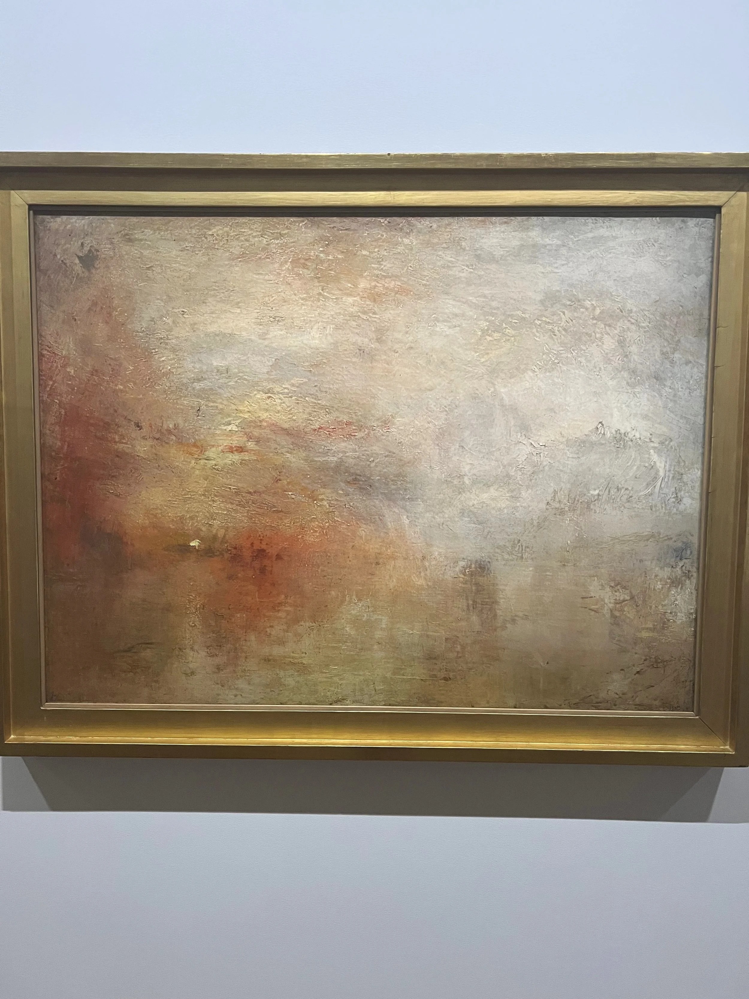 I was struck by the diversity of brush strokes and how Turner could make it seem a larger painting than it was in fact. The impact due to the build up of colours and glazes and the small figures seemed to make the painting ‘grow’ beyond its edges.