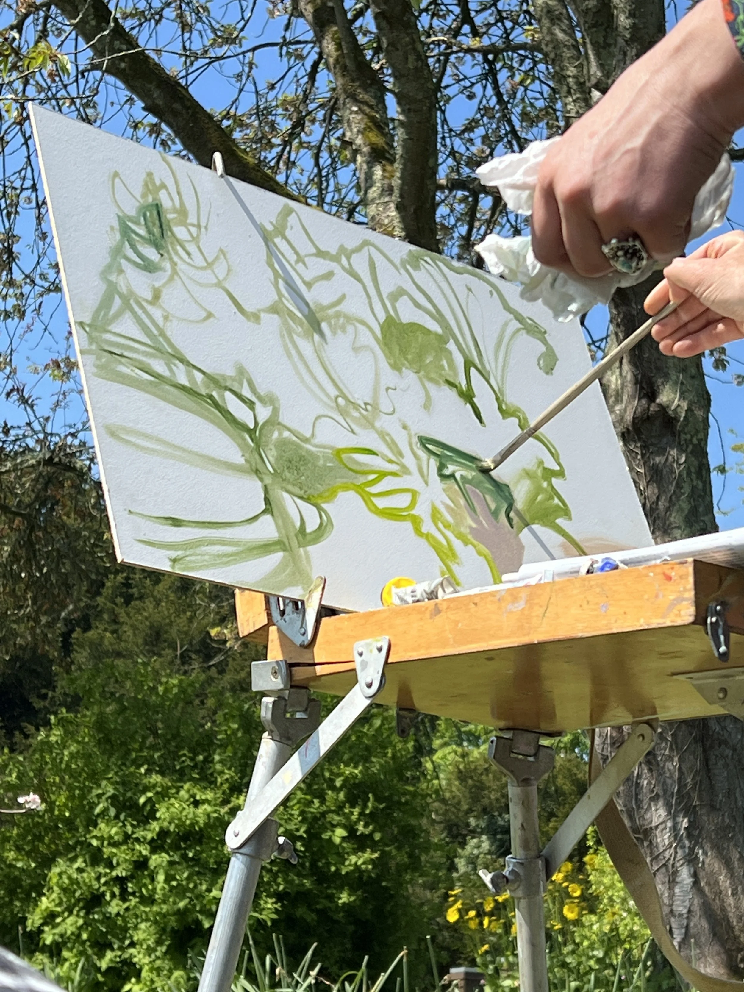One of the best things about painting there is the continuity of care given to the gardens. The same family have lived there for 40 years and we were given a tour of the gardens by the man who has devoted himself to the design, planting and care of the entire 15 acres. The stream, kitchen gardens and the terraced walks are all grown according to their position (were the sun and wind affect them etc), and co-dependant on one another, the kind of knowledge that has helped it be so successful in growth and layout is only gained from living and working on the land. I am not a gardener but once immersed in the landscape it becomes clear the interlinking of each plant and how there is never a ‘wrong’ design in nature. Organic forms are so perfect to draw blind contour (not looking at the page), and using colour washes to describe tones and light got easier with practice.