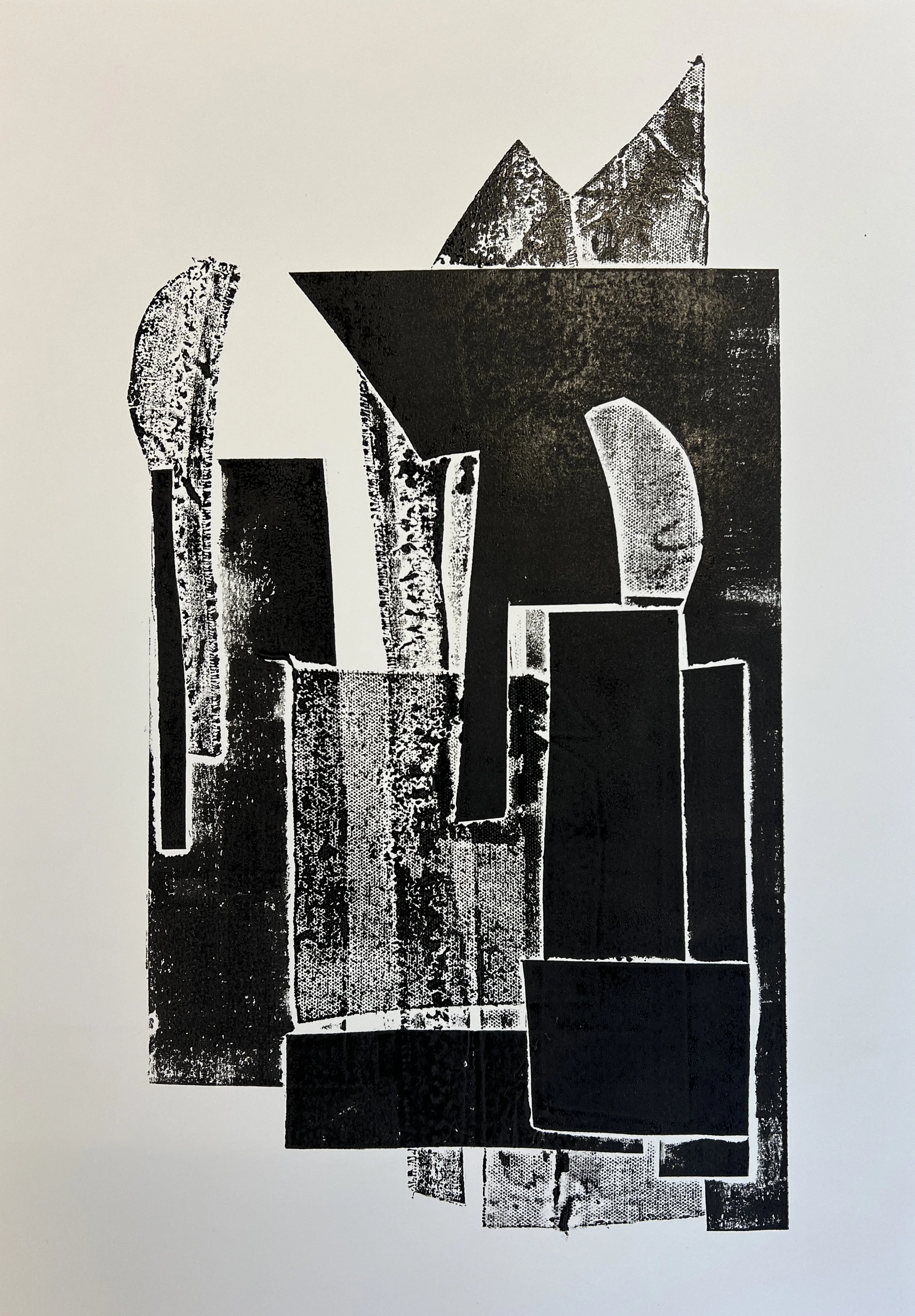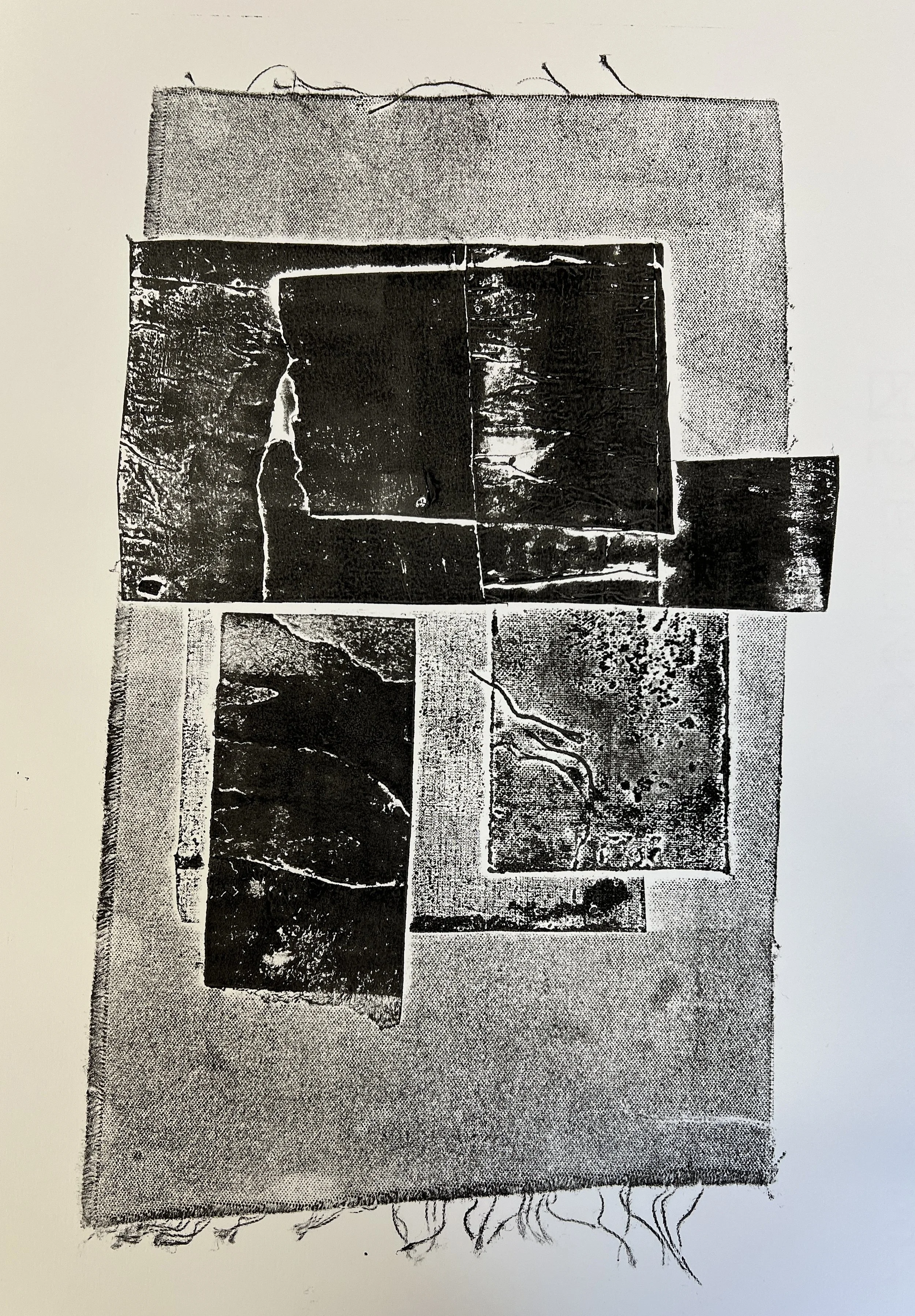 Key experiments I have done since seeing this show have been printmaking, using collages I made earlier in the year and experimenting with layering and ghost images of these (see fig. 2-7).