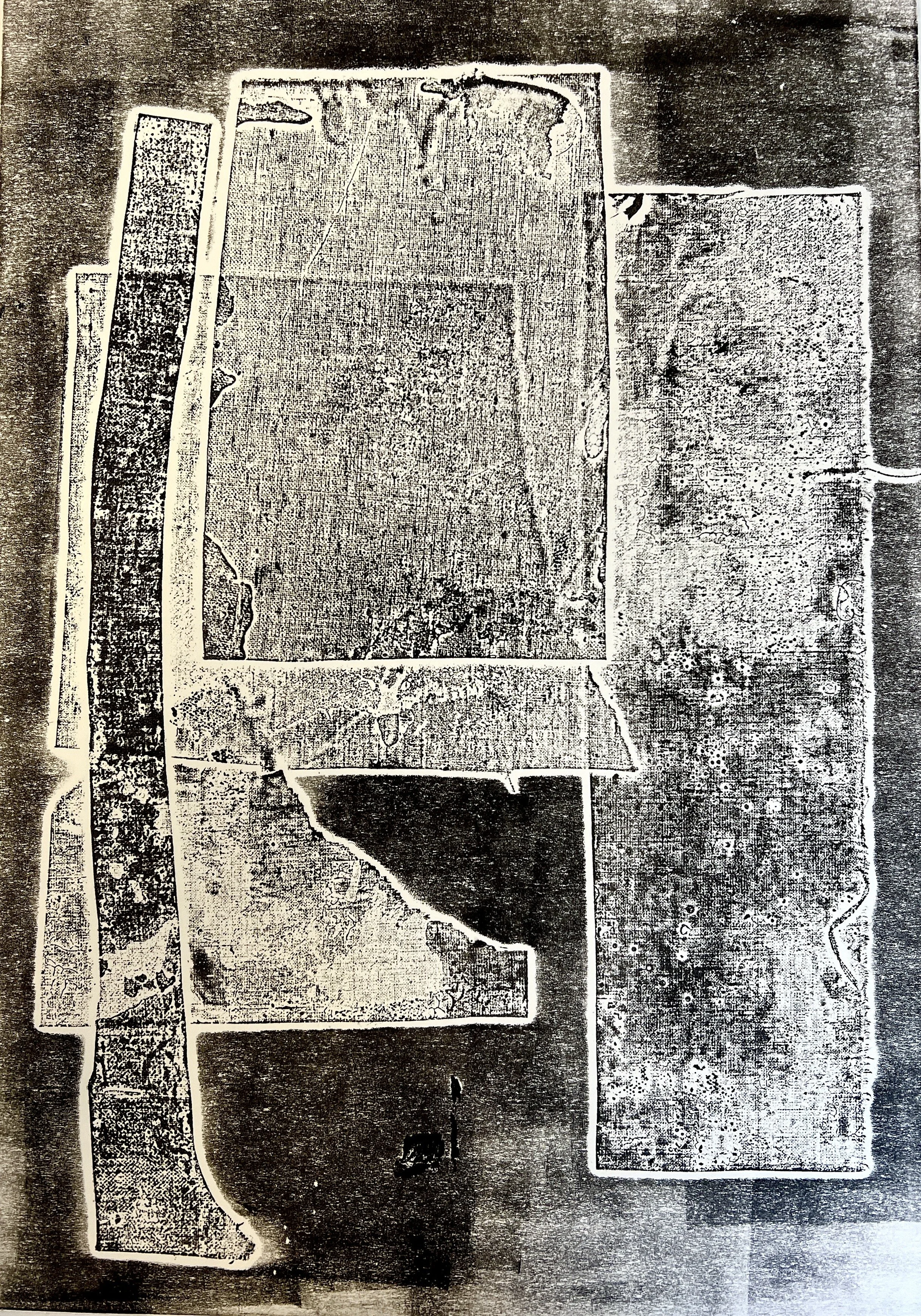 Figure 6. Sally Barron, footnotes, 2024, ghost print, printed collage on paper, 210 × 297 mm.